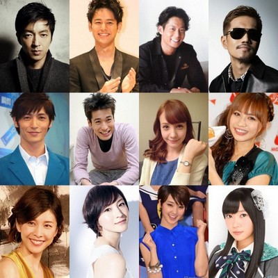 大沢たかお・妻夫木聡・KENJI・ATSUSHI・玉木宏・佐藤隆太・トリンドル玲奈・優木まおみ・竹内結子・広末涼子・剛力彩芽・指原莉乃などなどです(*^^*)